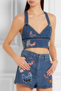 Mas para o dia, vale tudo: além dos flare jeans e das calças boca de sino de todos os comprimentos, dos skinny que teimam em não sair de cena em todos os tons, de culottes e track pants, a ganga apresenta-se num verdadeiro show de variedades: de tops bordados a corpetes, de saias linha A a ganga franjada e desfiada como não se via desde finais dos anos 90, passando por blazers, jardineiras e casacos de todos os feitios.