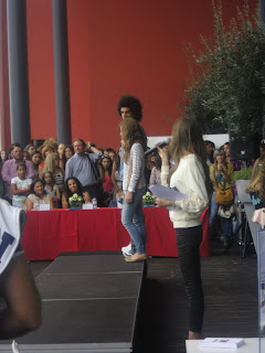 Tal como vos contei ontem, a tarde de Domingo foi dedicada à moda e ao convívio com gente gira e bem disposta, a convite da Primark. Além de assistir à selecção dos 10 vencedores do Casting Primark, que serão a partir de agora representados pela agência Act In Models, quem passou pelo Fórum Coimbra teve a oportunidade de aprender técnicas de maquilhagem, de reciclagem de roupas e acessórios (com a Su Ferro, do blog I love Fita Métrica) e de receber conselhos de moda da Babi. A adesão foi enorme - com uma multidão a encher a loja no rés do chão, enquanto outra se concentrava na esplanada para assistir ao desfile- e a chuva foi gentil (menos para o meu cabelo). Quanto a mim, aproveitei para experimentar uma das peças que trouxe da Primark e testar três tendências da estação: o brocado, o tweed e os marotos dos stilettos recém regressados às passerelles e às ruas. Veredicto? Já tinha saudades, mas os pumps são muiiito mais confortáveis para estar de pé. Uma senhora não se queixa e assim fiz...