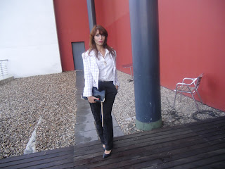 Até aí enfim, se não tivessem parado nos anos 80/90. Ou seja, confundem tudo: gostam de peças chamativas, com berloques e logótipos, e se possível, todas ao mesmo tempo. Veludos, cetins, aplicações, calçado ou casacos de verniz, nada é demais para usar em pleno dia e o resultado raramente é lisonjeiro. A consequência é um look datado, com imensa poluição visual. O exemplar de ontem trazia nem mais nem menos do que umas skinny jeans escuras - muito giras, nada a apontar - com um blusão curto (elas adoram blusões curtos) preto, de tachas, com letras; peep toes altíssimos, de veludo, acompanhados de meias de rede estilo anos 50; por fim, uma carteira com estampados coloridos, quase barrocos, a destoar totalmente do resto...para além de outros enfeites que só serviam para confundir.