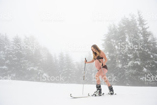 Sim, que isso do casaco havia de valer de muito...nem sei o que é pior em tal ideia: se o ridículo, se a galdeirice e sem vergonhice, se o disparatado de andar de bikini no meio da neve em qualquer circunstância, se o propósito não só de tirar tais fotografias mas de partilhá-las com o mundo (como se o meu marido alguma vez desse Amens a tal coisa, ainda que eu fosse desmiolada a esse ponto), se o facto de o frio ser arriscadíssimo não só para uma gestante mas para o pobre inocente que não fez mal nenhum.