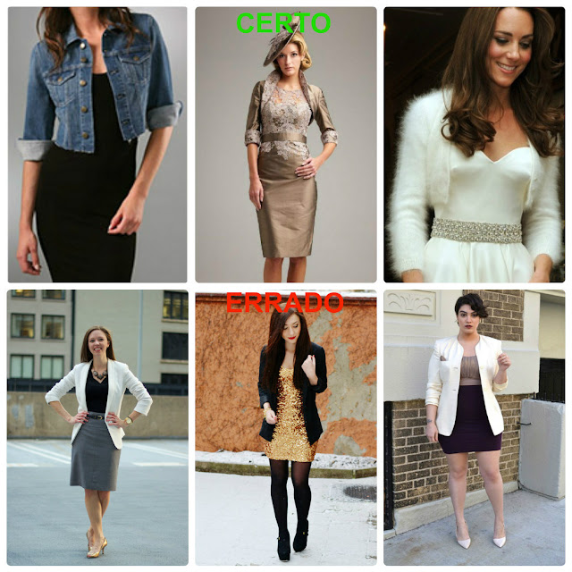 Se vai usar um vestido de cocktail pelo joelho ou 3/4, por exemplo, um bolero fará com que a figura fique mais longa, além de criar curvas bonitas- ao contrário de um casaco que cubra totalmente a cintura.